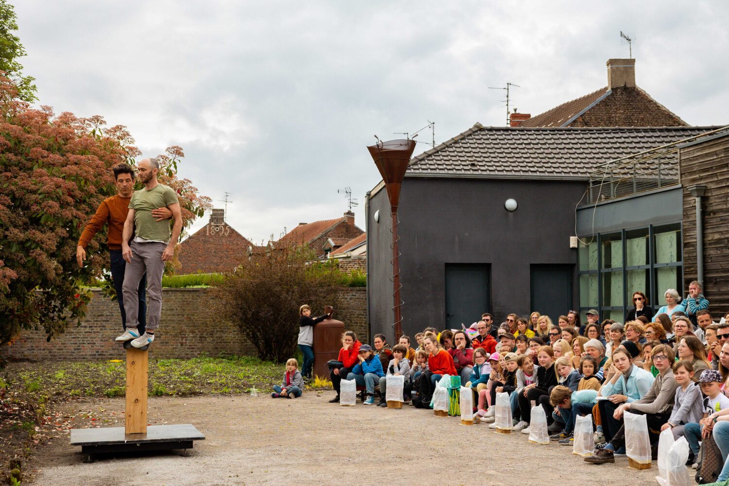 Rapprochons-nous is an intimate duet of balance performed on a wooden beam.