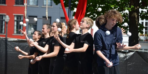 La Fédécirque anime le Marché aux Porcs pendant l’après-midi, enchainant de nombreux numéros.